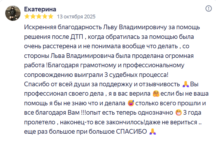 «Наша специализация - юридическая помощь в сфере дорожного движения. И лучшее подтверждение этому - наша успешная практика